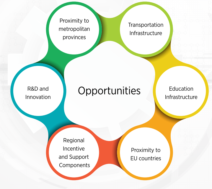 İstanbul, Bursa and İzmir; by hosting specialized centers such as Technoparks where R&D studies