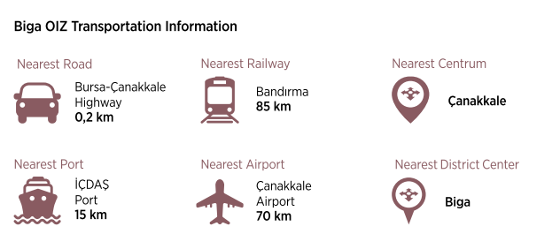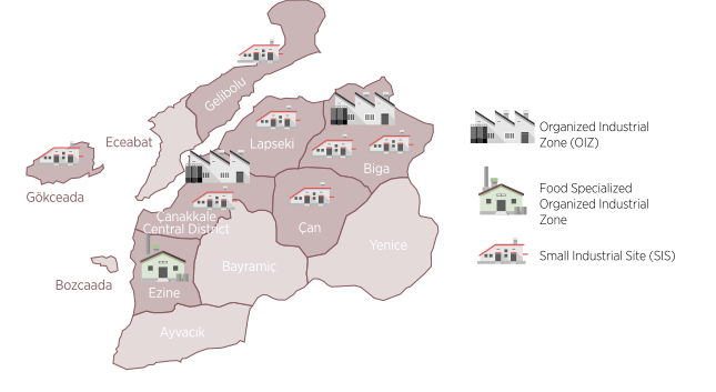 There are two Organized Industrial Zones (OIZs) in Çanakkale, one in the Biga district and the