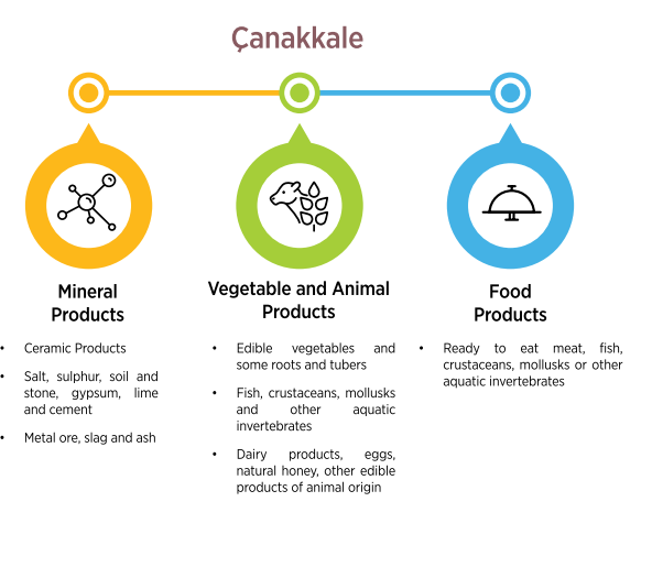 The areas in which Çanakkale has a competitive advantage in exports are mineral products,