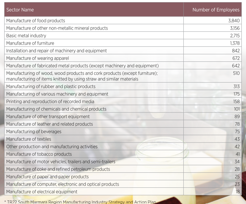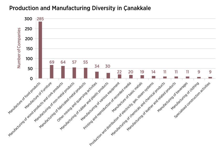 Çanakkale engaged in various industrial sectors, with the main areas of manufacturing being food