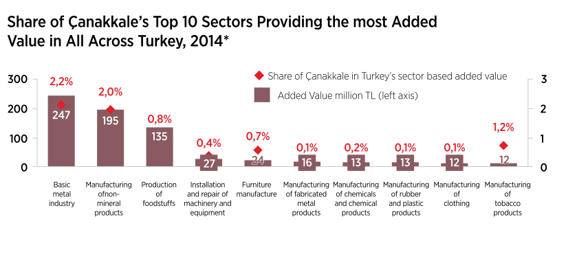 comes from basic metal manufacturing, and Çanakkale generates the 2.2 percent of the overall