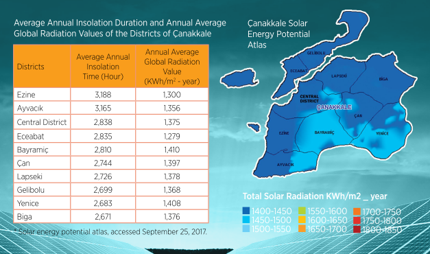 Ezine, Ayvacık, Çanakkale Central District, Eceabat and Bayramiç districts are among the leading districts in the province in terms of insolation, which is very important for solar energy investments.